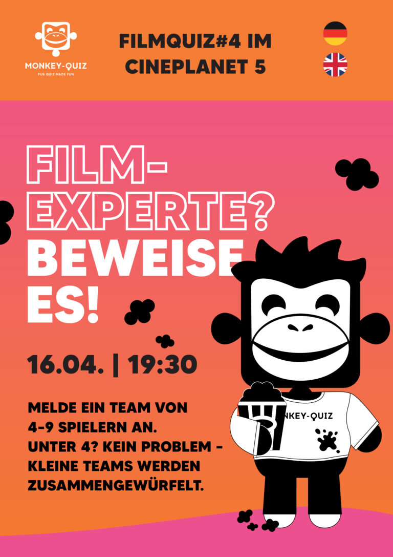 Am 16. April feiern wir die Premiere unseres ersten Film Quiz bei uns im Kino.
